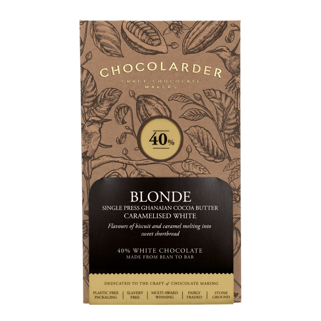This bar is what dreams are made of a mature take on a childhood favourite. It’s almost as if they took caramel shortbread and used Chocolarder magic to turn it into smooth, moreish white chocolate. That is essentially what the caramelisation of white chocolate achieves; and it tastes delicious!